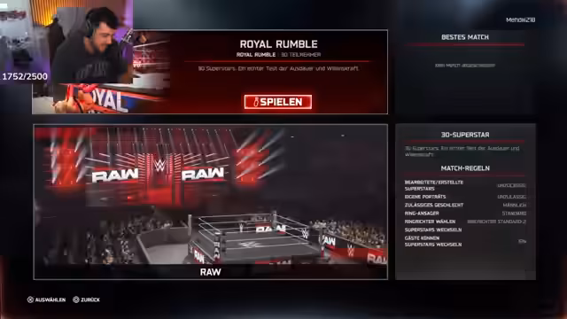 02:12:50Nach einer längeren, frustrierenden Spielsession im Spiel 'Velo', das der Streamer als 'unerträglich' und 'anstrengend' beschreibt, weil es toxisches Verhalten, Cheater und Smurfs fördere, beschließt er abrupt, das Spiel zu wechseln. Es wird der Wunsch geäußert, etwas 'Anderes' zu machen. Daraufhin wechselt der Streamer zu 'WWE 2K', um einen 'Royal Rumble' zu veranstalten. Dies geschieht im Rahmen einer spontanen Kooperation mit den Community-Mitgliedern René und Ziegenmann, um den Spaß und die Interaktion zu erhöhen.