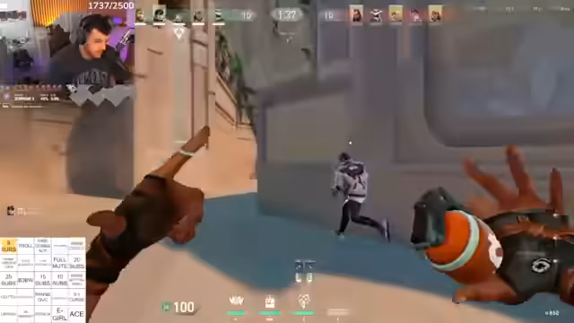 01:00:55Im weiteren Verlauf des Valorant-Spiels wird der Fokus auf taktische Fehler und gescheiterte Pläne gelegt. Der Streamer und sein Team haben Probleme mit der Geldverwaltung und der Positionsierung, was zu schnellen Rundenverlusten führt. Die Kommunikation ist von Unzufriedenheit und Vorwürfen geprägt. Der Streamer kritisiert die Entscheidungen seiner Mitspieler scharf, während er versucht, durch Aktionen wie einen Ultraschallangriff das Spiel zu drehen, aber letztlich scheitert und seine Frust über die mangelnde Teamleistung zum Ausdruck bringt.