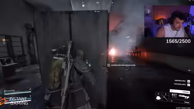 06:06:17Es bricht ein hektischer Kampf aus, bei dem der Streamer und sein Teammitglied aktiv von mehreren Gegnern attackiert werden. Der Streamer platziert einen Raiderfeuer, doch der Gegner wirft eine Granate, was zu einem unkontrollierten Ausgang der Situation führt. Nach dem Tod seines Partners versucht der Streamer, die rechte Tür zu blockieren, wird aber letztlich besiegt, was ihn frustriert und die Pfeife des Spiels unterstreicht.