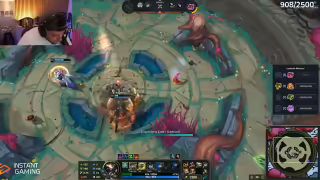 04:47:15Der Turnierverlauf nimmt eine entscheidende Wendung, da die Teams mit 31 Punkten im nächsten Spiel um den Gesamtsieg kämpfen. Die Spieler bemerken, dass sie mit 27 Punkten hinterherhinken und ein 'Back-to-Back' gewinnen müssen, um eine Chance zu haben. Die Frustration über die Champion-Auswahl ist groß, da sie 'Warwick' und 'Woli' erhalten haben, was als schlechte Kombination für ihre Spielweise angesehen wird. Technische Probleme beim Start des Spiels, wie ein hängendes Spiel und ein Blackscreen, tragen zur angespannten Stimmung bei. Trotz der Schwierigkeiten versuchen die Spieler, sich auf das Spiel zu konzentrieren und Gegner wie 'Jinx' zu fokussieren. Die Diskussion über die 'Anvil-Strat', bei der keine Items gekauft werden, zeigt die strategische Tiefe, aber auch die Schwierigkeiten bei der Umsetzung, wenn Fehler passieren. Die Hoffnung auf einen Sieg schwindet, da die Gegner als zu stark empfunden werden, insbesondere 'Master Yi', der als unbesiegbar gilt.
