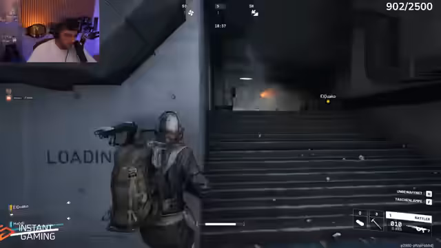 07:25:39Die Spieler befinden sich in einem intensiven Kampf, bei dem sie versuchen, einen Gegner in die Zange zu nehmen. Nach einem kurzen Schusswechsel und der Markierung des Gegners, der sich auf der Treppe befindet und nach oben flüchtet, versuchen sie, sich strategisch zu positionieren. Einer der Spieler versucht, zwischen sich und den Gegner zu gelangen, um in Sicherheit zu sein. Nach dem erfolgreichen Ausschalten des Gegners wird die Beute begutachtet. Der besiegte Gegner hatte lediglich Energie und einen Zweier-Rucksack dabei, was die Spieler enttäuscht feststellen. Trotzdem wird alles Wertvolle eingesammelt, und es wird festgestellt, dass man überladen ist. Die Spieler müssen sich schnell heilen, da weitere Gegner erwartet werden. Sie hören Geräusche, die auf die Ankunft weiterer Feinde hindeuten, und bereiten sich auf die nächste Konfrontation vor.