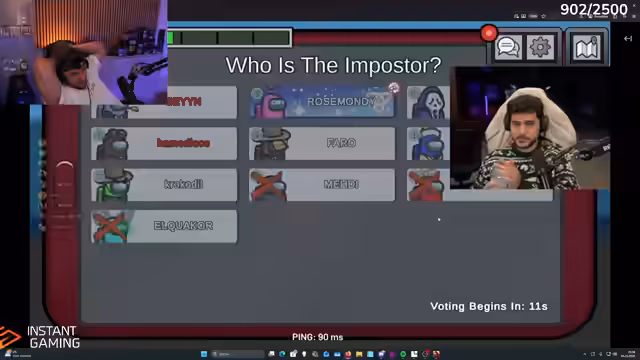 08:48:29In der zweiten Runde wird erneut ein Imposter schnell identifiziert. Ein Spieler, der sich als einer der besten Crewmates bezeichnet, erklärt, wie er Schradin als Imposter enttarnt hat. Er sei in Electrical gelaufen, wo ihm Schradin entgegenkam und in Richtung Lower Engine ging, wo die Leiche lag. Dies führte zur sofortigen Anschuldigung und dem Gewinn der Runde für die Crewmates. Die Diskussion danach dreht sich um die schlechte Performance der Imposter und die Schwierigkeit, in einem Team mit bestimmten Spielern zu sein. Es wird humorvoll angemerkt, dass das Team heute eine „Tonne“ wiegt, was auf die Anzahl der über 100 kg schweren Spieler anspielt.