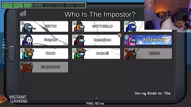 10:46:48Nach einem Kill in der Bank-Sektion des Spiels entbrennt eine hitzige Diskussion über die möglichen Täter. Rose wurde in der Bank gesehen, während sie Waffen inspizierte, was sie als unverdächtig erscheinen lässt. Der Streamer selbst befand sich zwischen Communication und Storage. Es wird spekuliert, dass Danny der Täter sein könnte, da er zuvor in den Camps war und Eldos den Kill gemeldet hat. Die Spieler versuchen, die Bewegungen und Positionen der anderen zu rekonstruieren, um den Imposter zu identifizieren. Es gibt Verwirrung und widersprüchliche Aussagen über die Anwesenheit bei den Lichtern in Electrical und die Bewegungen danach. Die Diskussion spitzt sich zu, als der Streamer selbst verdächtigt wird und drei Stimmen gegen ihn abgegeben werden, was ihn sichtlich frustriert.