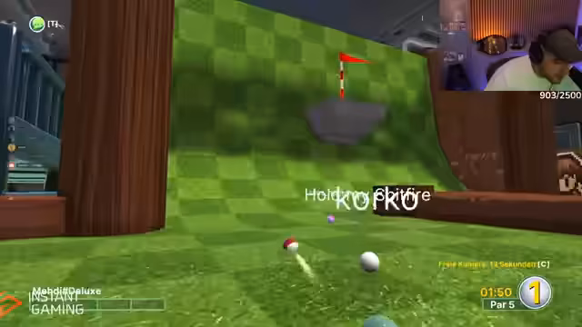 11:48:22Das Golfspiel geht weiter und sorgt für gemischte Gefühle. Ein Spieler namens Danny scheint Schwierigkeiten mit seinen Schlägen zu haben, was zu Kommentaren wie „Der einzige, der den Schlag verkackt hat, ist Danny“ führt. Die Physik des Spiels wird als unberechenbar empfunden, da die Bälle oft unerwartete Wege nehmen. Es gibt Momente der Frustration, wenn Bälle in Löchern landen, die nicht gewollt waren, oder wenn Schläge nicht wie geplant ausgeführt werden können. Die Spieler versuchen, mit verschiedenen Strategien und teils verzweifelten Versuchen, die Bälle ins Ziel zu bringen, was immer wieder zu emotionalen Ausbrüchen führt. Trotz der Schwierigkeiten bleibt die Stimmung angespannt und die Hoffnung auf einen guten Schlag besteht.