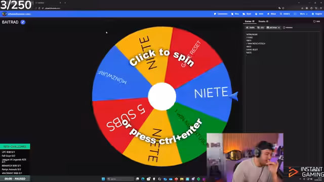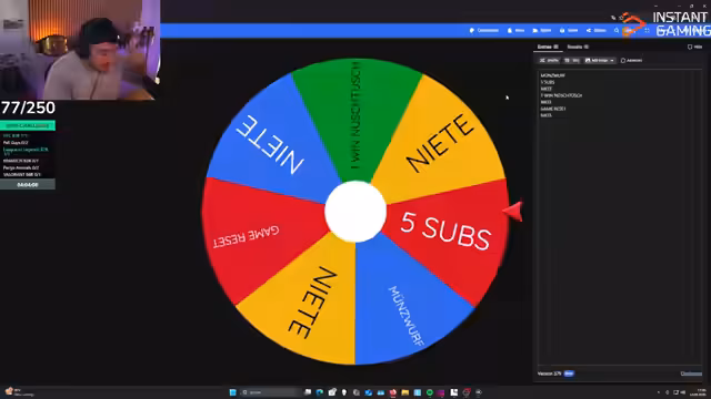 00:36:32Es folgt eine detaillierte Erklärung der Regeln für die Win-Challenge. Die Challenge umfasst verschiedene Spiele, darunter League of Legends, Valorant, UFC, Fall Guys und Party Animals. Für jedes Spiel müssen Back-to-Back-Siege errungen werden, um ein Baitrad auszulösen. Wenn ein Back-to-Back-Sieg gelingt, kann ein Zuschauer am Rad drehen, wobei verschiedene Ergebnisse möglich sind, darunter ein Reset der gesamten Challenge. Das Sub-Goal für das erste Rad beträgt 250 Subs. Sobald das Sub-Goal erreicht ist, kommt ein spezielles Rad zum Einsatz. Wenn das Rad auf "Niete" landet, passiert nichts. Landet es jedoch auf "Reset", wird die gesamte Challenge zurückgesetzt. Für Valorant wird das Sub-Goal auf 500 erhöht. Zuschauer können Nashis (Subs) giften, um das Rad zu drehen. Die Anzahl der benötigten Subs hängt davon ab, wie schwierig der Win war. Es wird auch ein Münzwurf-Feature erklärt, das zufällig aktiviert wird, wenn jemand Subs spendet.