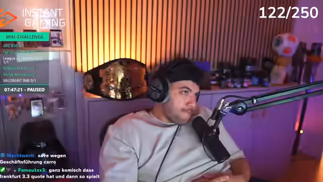 07:25:15Es wird über die bevorstehende Back-to-Back-Herausforderung gesprochen, während im Hintergrund das Lied "Heidi" läuft. Der Streamer kommentiert das Stadion und hofft, dass es der Back-to-Back wird. Nach dem erfolgreichen Abschluss des Back-to-Backs erwähnt der Streamer, dass er Zink-Magnesium nehmen wird, da er Kopfschmerzen hat. Er überlegt, welchen Song er als Nächstes spielen soll und entscheidet sich für The Weeknd. Es wird festgestellt, dass einer der Gegner AFK ist. Der Streamer gibt Anweisungen an seine Mitspieler und lobt eine schöne Grätsche. Er betont die Bedeutung von Spiel und Lauf und lobt die Aktionen seiner Mitspieler. Es wird über verschiedene Spiel-Modi gesprochen, darunter Mario Kart und Last Man Standing, wobei der Streamer feststellt, dass diese Modi cool sind. Er erwähnt, dass er am 17. möglicherweise nicht für FC 26 verfügbar ist, es sei denn, Instant Gaming erlaubt es ihm. Der Streamer drückt seine Frustration über die Schwierigkeit des Spiels aus und fragt sich, warum man nicht Solo spielen kann. Er bedankt sich bei einem Zuschauer für einen Resub und betont, dass er ein ungeschliffener Rohdiamant ist. Der Streamer räumt gerade richtig auf und erklärt die Funktion der Bombe im Spiel. Er lobt seine eigenen Fähigkeiten und interagiert mit dem Chat.