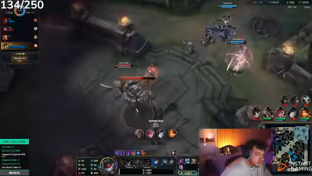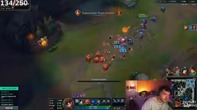 02:15:35Das Spielgeschehen in League of Legends spitzt sich zu, mit entscheidenden Aktionen und dem Versuch, einen Back-to-Back-Sieg zu erringen. Der Streamer kommentiert die Spielzüge, insbesondere die Rettungsaktion von Tam Kench, und die Bedeutung des Teamspiels. Es wird die Frage aufgeworfen, ob die Zuschauer die Challenge überhaupt goutieren. Nach dem gewonnenen Spiel wird der Fokus auf den bevorstehenden Back-to-Back-Versuch gelegt, der als besonders interessant für die Zuschauer angekündigt wird. Der Controller des Streamers macht weiterhin Probleme, was zu technischen Schwierigkeiten führt. Es wird überlegt, welche Belohnungen oder Konsequenzen mit dem Erreichen bestimmter Ziele verbunden sind, wie z.B. das Drehen an einem Rad bei Erreichen von 250 Daily Subs, was einen Reset der Challenge bedeuten könnte. Der Streamer äußert sich abfällig über nörgelnde Zuschauer und verteidigt seine Art, Challenges zu gestalten.