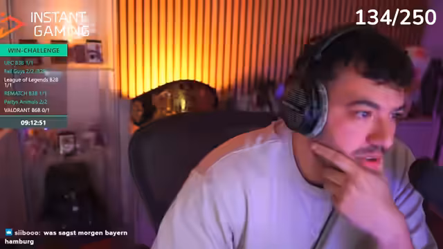Mehdi startet eine Win-Challenge mit League of Legends, UFC und Fall Guys. Nach anfänglichen technischen Problemen werden die Regeln erklärt: Back-to-Back-Siege in verschiedenen Spielen lösen ein Glücksrad aus, das Zuschauer durch Subs aktivieren. Es gibt Belohnungen, aber auch Strafen, wie das Tragen eines Rivalen-Trikots. Diskussionen über Teamzusammensetzung und Zuschauerverhalten prägen den Verlauf.