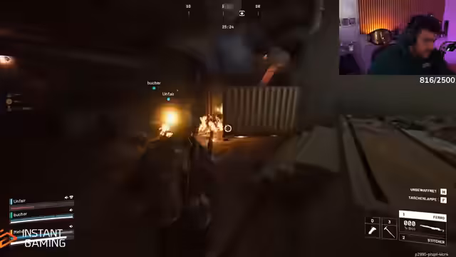 08:27:37Während eines intensiven Gefechts äußert der Streamer seine Überforderung, als er von mehreren Gegnern und Drohnen gleichzeitig angegriffen wird. Er versucht, seine Position zu halten und Gegner zu markieren, während er gleichzeitig versucht, seine Munition zu verwalten. Die Situation wird durch die schlechte Sicht und die Dunkelheit im Spiel erschwert. Trotz der chaotischen Lage gelingt es ihm und seinem Teammate, einige Gegner auszuschalten und wertvolle Gegenstände wie Ferro-Einzellen zu sammeln. Die ständige Bedrohung durch Drohnen und die Notwendigkeit, schnell Entscheidungen zu treffen, halten die Spannung hoch.