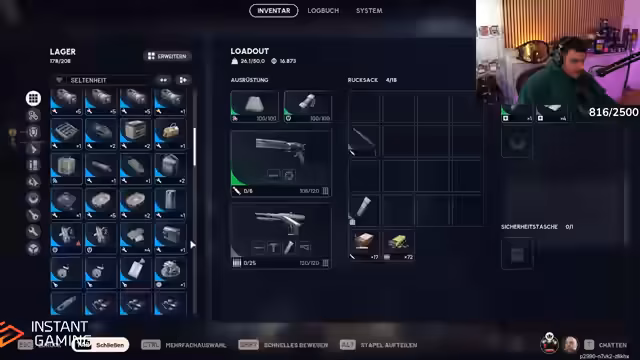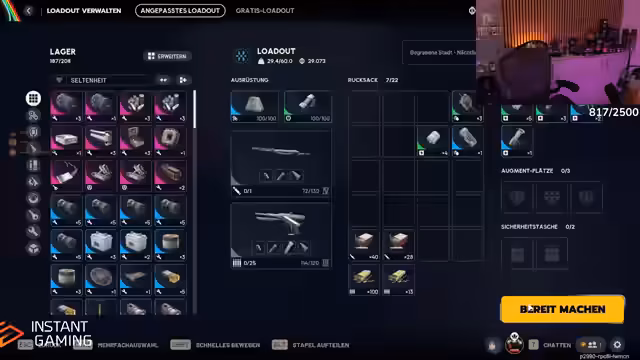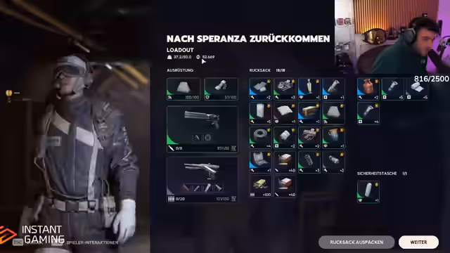 05:07:16Die Spieler versuchen, ihr Inventar zu organisieren und sich auf den nächsten Einsatz vorzubereiten. Es wird diskutiert, welche Gegenstände verkauft oder eingelagert werden sollen, um Platz zu schaffen und die Ausrüstung zu optimieren. Mehdi hat Schwierigkeiten, sein überfülltes Inventar zu verwalten, während andere Spieler Ratschläge geben, wie man am besten vorgeht. Es wird überlegt, ob man mit einem „Gratis Loadout“ oder mit besserer Ausrüstung in den nächsten Kampf gehen soll. Die Spieler tauschen sich über Waffen wie die „Stitcher“ und „Ferro“ aus und planen, wie sie ihre Ausrüstung am effektivsten nutzen können.