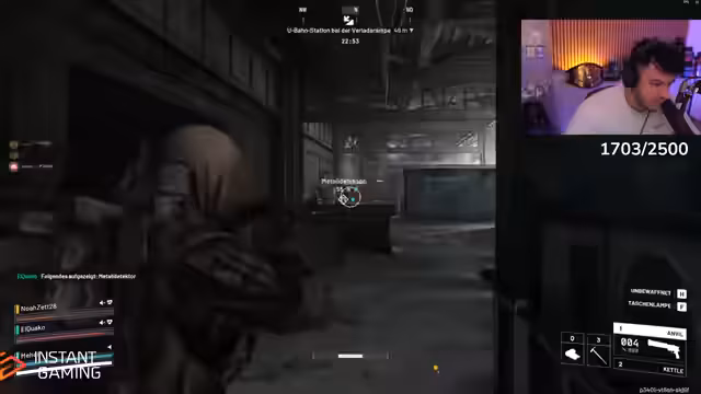 01:43:32Die Beschäftigung mit den Spielmechaniken steht im Vordergrund. Es wird über den Schaden eines bestimmten Teils gesprochen, der laut Streamer zwar hoch ist, vom Chat aber aufgrund der verfügbaren Zeit zum Ausweichen als unkritisch eingestuft wird. Der Fokus liegt auf der Analyse von Spielzügen wie der Kletterfunktion und der Zipline, die als krank und strategisch wertvoll für das Baiten von Gegnern beschrieben werden. Der Streamer experimentiert mit Waffen und ihrer Schadensentwicklung, wie den Spritzen, die angeblich schneller geworden sein sollen, und erkundet alternative Loot-Strategien in verschiedenen Räumen der Map.