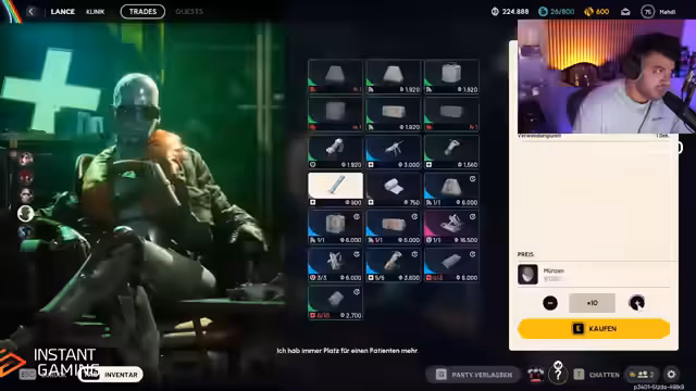 00:29:40Der Streamer startet einen gemeinsamen Raid mit einem Zuschauer namens Philo. Gemeinsam führen sie eine erfolgreiche Raids durch, bei der sie wertvolle Items wie Waffen, Rüstungen und Ressourcen erbeuten. Der Streamer systematisiert den Austausch, indem er eine Liste mit benötigten Materialien erstellt, die Philo ihm aus seinem Inventar zur Verfügung stellt.