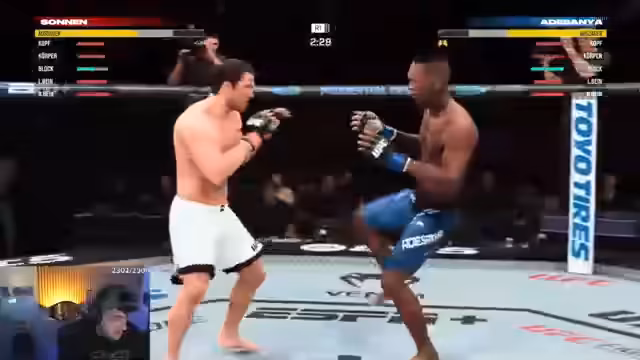 05:02:21Der Streamer äußert ein hohes Selbstvertrauen gegenüber realen Kämpfern. Er ist überzeugt, dass er nach einem halbjährigen gezielten Training gegen Fliegengewicht-Kämpfer wie Kai Kara-France gewinnen würde, da er deren Gewicht um das Doppelte übersteige. Diese starken Aussagen werden im Chat teils belächelt, was zu einer Debatte über die Leistungsfähigkeit realer MMA-Kämpfer im Vergleich zum Spiel führt.