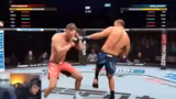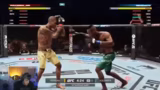03:43:53Der Streamer analysiert intensiv die Kämpfe im Spiel, insbesondere die Auswirkung von Ausdauer und Treffern. Er beobachtet, wie Körpertreffer bei Gegnern akkumulieren und führt dies zu einem Kampfausfall. Er preist die Wirksamkeit von Uppercuts und Kombos, insbesondere wenn der Gegner eine geringere Ausdauer hat. Bei manchen Gegnern wie Conor McGregor ist die Leistung jedoch katastrophal, da dieser trotz erlittener Schäden weiterschlagen kann. Das Gefühl, einen Gegner auszunocken, wird als sehr befriedigend beschrieben, wobei das Gefühl selbst bei einem K.O.-Gegner oft zehnmal schlimmer sei.