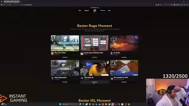 00:16:13Der Streamer kündigt für den heutigen Tag hauptsächlich Reaction-Inhalte an. Zuerst sollen die Streaming Awards Nominierungen behandelt werden, gefolgt von neuen Videos von Otto Bulletproof. Danach besteht die Möglichkeit, spontan die Weekend League zu beenden, zu zocken oder einfach zu quatschen. Es wird eine Diskussion über die Möglichkeit von Casino-Streams eröffnet, wobei der Streamer die Community nach ihrer Meinung fragt, ob sie dies feiern oder ablehnen würden. Er spricht über die Vor- und Nachteile von Slots auf Twitch im Vergleich zu Kick, insbesondere im Hinblick auf die Reichweite und Community-Bindung. Des Weiteren wird die Frage aufgeworfen, ob es in diesem Jahr genügend 'krasse Clips' für die Awards gab, und der Streamer äußert seine Enttäuschung, dass seine eigene Brimstone-Ult nicht als 'bester Gaming-Moment' nominiert wurde.