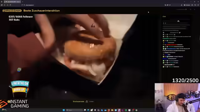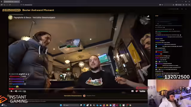 00:30:10In der Kategorie 'Bester IRL-Moment' werden verschiedene Clips begutachtet. Ein Clip, in dem eine Frau den Streamer wegen Datenschutz anspricht, wird als 'Wahnsinn' und 'respektlos' bezeichnet, aber auch als 'geistkrank' lustig empfunden. Ein weiterer Clip zeigt einen Döner-Essensmoment, der den Streamer zum Nachdenken über Döner anregt. Ein Clip, in dem ein Vogel auf den Kopf des Streamers kackt, wird ebenfalls gezeigt. Ein Clip, in dem der Vater des Streamers auftaucht und Thrombosestrümpfe trägt, wird humorvoll kommentiert. Der Streamer äußert den Wunsch nach einer Einladung zu den Stream Awards, um dort mit anderen Streamern zu speisen und zu trinken. Er betont, dass der Clip mit der 'Datenschutzpapier'-Frau für ihn der klare Favorit in dieser Kategorie ist, da die Art und Weise, wie sie auftritt, 'überragend' ist.