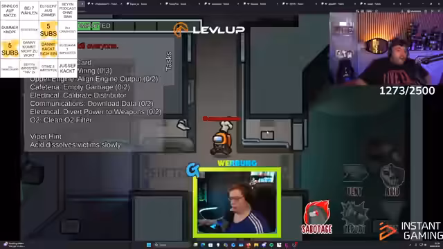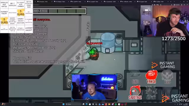 08:29:37Der Streamer beschreibt einen Killversuch, der fehlschlägt, weil die Leiche zu schnell verschwindet. Er erwähnt auch seine Frust über die aktuelle Situation und die Schwierigkeiten, den 'Imposter' zu finden. Er beschreibt, wie er versucht, einen Kill zu machen, aber es wird schwierig, weil die Leiche schnell verschwindet. Das Spiel endet für ihn negativ.