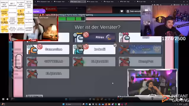 08:50:19Der Streamer beschreibt eine 'Duo'-Strategie, die er vermutet. Er erwähnt, dass 'Matze' und 'Isa' sich gedeckt haben könnten. Er beschreibt, wie er versucht, die anderen Spieler zu überzeugen und verdächtigt 'G-Time', weil er ein 'RP-Verhalten' zeigt. Das Voting ergibt, dass 'G-Time' nicht der 'Imposter' war, aber die Runde wird trotzdem verloren.