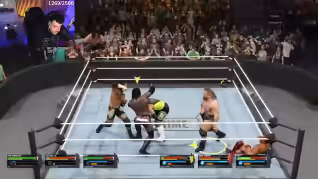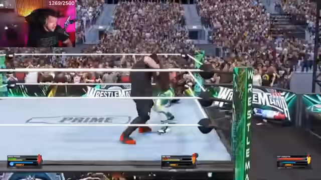 12:05:35Während des Streams wird ein WWE 2K Royal Rumble veranstaltet, bei dem es zu dramatischen Momenten und Konflikten kommt. Der Streamer betont, dass er gegen seine Mitspieler hintergehen wird, was für Spannung sorgt. Es kommt zu taktischen Manövern und Dominanz im Ring. Die Spieler versuchen, durch geschickte Konter und Attacken die Oberhand zu gewinnen. Diese Match-Szenen zeigen den kompetitiven Aspekt des Streams und die besondere Dynamik, die durch das Wrestling-Game entsteht.