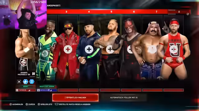 06:03:03Der Streamer spielt WWE 2K Royal Rumble mit der Community. Er zeigt seine Begeisterung für das Spiel und erwähnt verschiedene Charaktere wie Shawn Michaels, Logan Paul, André Giant, Steve Austin, Roman Reigns und Drew. Er beschreibt seine eigenen Fähigkeiten im Spiel, insbesondere bei der Sweet Chin Music, und hält sich für den Besten darin. Während des Rumbles gibt es wiederholt technische Probleme und es ist schwierig, Gegner zu eliminieren.
