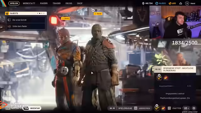 06:43:28Während eines Raids in der Begrabenen Stadt wird ein feindlicher Spieler mit orangem Skin entdeckt, der wahrscheinlich zu einem anderen Team gehört. Der Streamer erkennt den Wert des Orangen-Loots, ist sich aber unsicher, ob der Gegner allein oder mit einem Team unterwegs ist. Man beschließt, eine Night Raid zu planen und Gegner zu campen. Der Streamer erwähnt den strategischen Vorteil von schweren Schilden und Heiler-Markern für das Campen, stellt aber auch fest, dass die Map aufgrund der vielen Häuser und versteckten Punkte sehr unübersichtlich geworden ist.