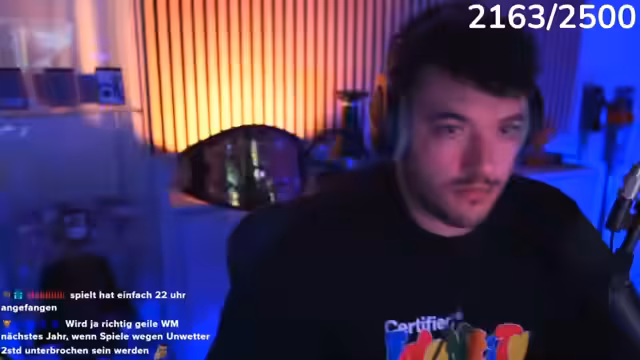 06:26:24Der Stream beginnt mit unklaren und fragmentierten Aussagen des Streamers, die zufällige und unzusammenhängende Worte wie 'Tanne' und 'sie schüttet' beinhalten. Kurz darauf werden technische Probleme deutlich, als eine offensichtliche Chatpanne erwähnt wird, bei der der Streamer bei jedem Kill einen Dreher am Rad erhält, während das Stand 0-9 zeigt und sein Mitspieler Panne keine Subs macht. Der Streamer äußert seine Frustration über diese 'gestörte Scheiße' und den unfairen Spielverlauf, der seine Konzentration stört.