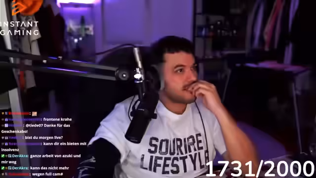 09:43:27Nach einer anscheinend anstrengenden Partie verkündet der Streamer eine kurze Pause. Er gibt an, keine Kraft mehr für ein weiteres Uprank-Match zu haben, da sein Körper schmerzt. In der Pause wechselt er zu persönlichen Themen, so erwähnt er Heißhunger auf einen Döner und Gummibärchen. Er spricht über seine berufliche Vergangenheit als Einzelhandelskaufmann, wobei er die Arbeitsbedingungen als langweilig und den ständigen Standortwechsel als frustrierend beschreibt.