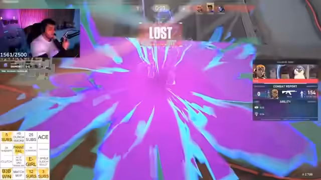 01:47:01Der Streamer wird zunehmend unzufrieden mit seinem Gameplay und das Spiel selbst. Er beschreibt eine Runde, in der er ohne Vorwarnung von einem Gegner eliminiert wird, was er als unmöglich und frustrierend empfindet. Er äußert sich besonders kritisch über die Neon, die er als geisteskrank bezeichnet, da diese seiner Meinung nach andere Agenten wie Chamber obsolet macht. Sein Unmut gipfelt in der Aussage, dieser Champ gehöre aus dem Spiel entfernt. Die hohe Trefferquote eines Gegners auf große Entfernung bestärkt seine Überzeugung, dass die Spielmechanik ein Problem darstellt.