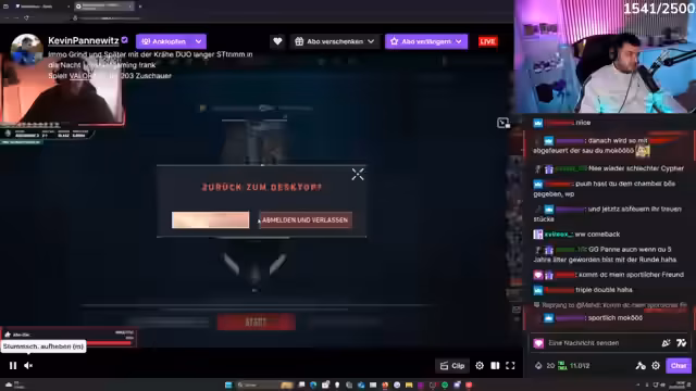 04:57:19Der Stream beginnt mit hochdynamischen Runden in einem Shooter-Spiel, bei denen der Sprecher über spektakuläre Kills, genaue Treffer und seine virtuelle Ausrüstung wie Waffen und Skine spricht. Parallel dazu tauchen wiederholt technische Störungen auf, darunter Laggs und Mausprobleme, die das Spielerleischtung kurzzeitig beeinträchtigen und kommentiert werden. Trotzdem dominiert der Fokus auf das ingame Geschehen, mit Analysen der gegnerischen Taktiken und eigenen strategischen Entscheidungen.