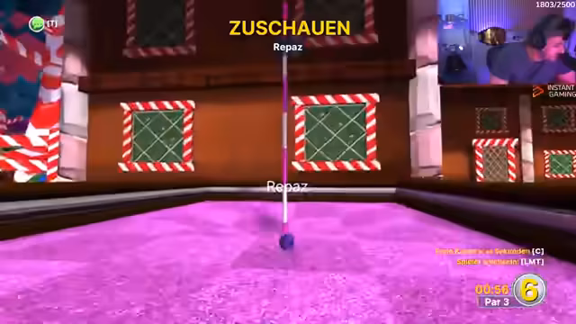 03:35:24Das Spiel 'Golf with your friends' beginnt. Der Streamer gibt eine kurze Einführung in die Steuerung, die das Mausrad und den linken Mausklick für das Laden des Schlags beinhaltet. Die erste Runde ist geprägt von technischen Schwierigkeiten, Fehlschlägen und einem chaotischen Spielstil. Die Spieler stören sich gegenseitig durch Schübe und Kollisionen, was zu humorvollen und frustrierten Ausrufen führt. Der Spielspaß steht im Vordergrund, auch wenn die Performance der Spieler anfangs holprig ist.