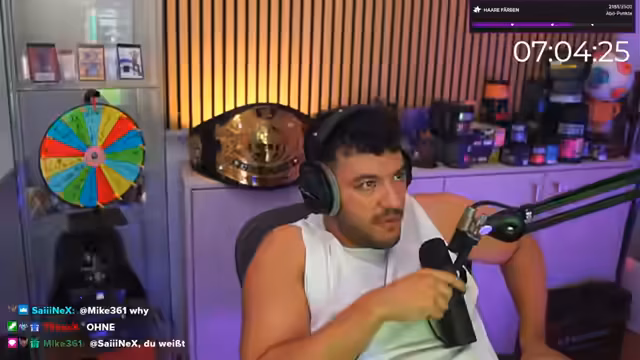 06:45:08Der Streamer startet eine Verlosungsaktion für seine Zuschauer. Es werden mehrere Preise ausgelost, darunter eine 25-Euro-PSN-Karte und diverse 'Free Spins' für ein Spiel. Er nutzt eine Glücksrad-Animation und nimmt Namen aus dem Chat, um die Gewinner zu bestimmen. Die Atmosphäre ist lockert, und er vergibt auch einzelne 'Spins' als Belohnung für spezielle Aktionen oder Spenden im Chat.