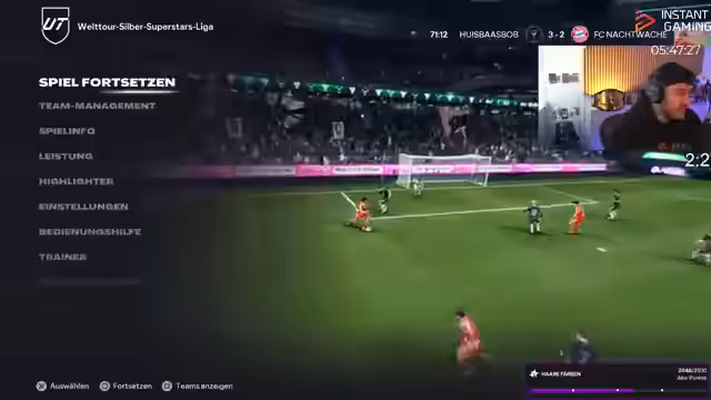 01:47:40Der Streamer kehrte zu seinen FIFA-Spielen zurück, beklagte aber weiterhin die hohen Latenzzeiten und Serverprobleme, die ihm das Spielen erschwerten. Er beschrieb, wie die Serverprobleme seine Spieler nicht korrekt darstellten. Neben den Spielen erwähnte er geplante zukünftige Inhalte, wie ein Reel für Instagram und eine mögliche Watch Party für ein anstehendes Spiel von Bayern München. Die Atmosphäre im Chat wurde als anstrengend empfunden, da er sich von den ständigen Hyping-Kommentaren gestört fühlte.