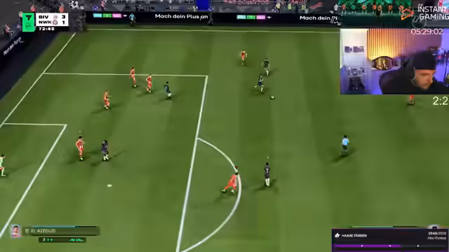 05:46:32Bei bestimmten Aktionen im Spiel, speziell bei einem Torschuss, wiederholt der Streamer die Phrase 'leckt mein Schwanz'. Er ist sich sicher, dass das Geräusch exakt so klingt und findet diese Situation humoristisch und bemerkenswert. Seine Aufmerksamkeit gilt dem Spielverlauf und den spezifischen Momenten, die er im Chat kommentiert und mit Wiederholungen unterstreicht.