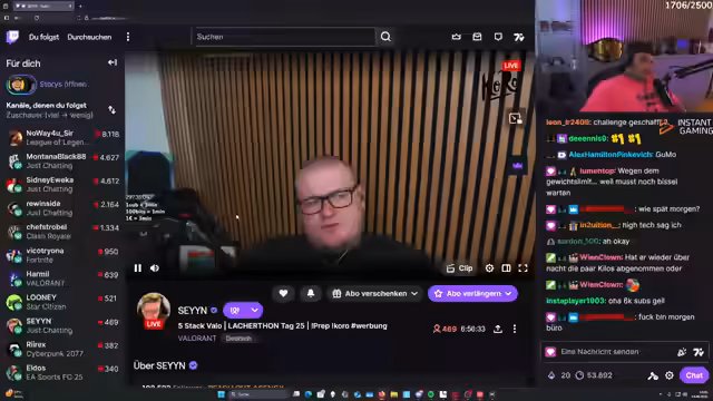 06:46:48Der Streamer befasst sich mit den technischen und finanziellen Details seines Berufs. Es gibt eine längere Diskussion über die Notwendigkeit von VPNs, um bestimmte Streams aus der Schweiz zugänglich zu machen. Des Weiteren spricht er über die Organisation von Events wie dem 'Boat House' und den organisatorischen Aufwand, einschließlich der Anfahrt potenzieller Partner. Sein Ziel, die Zuschauerzahl für ein bevorstehendes Fußballspiel zu prognostizieren und zu diskutieren, zeigt das kaufmännische Denken hinter seinem Stream und den Wunsch, die Reichweite seiner Inhalte zu maximieren.