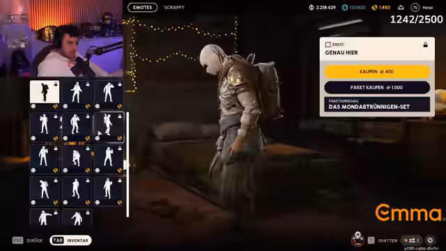 04:17:55Im finalen Abschnitt des Matriage-Events bereitet sich der Streamer auf intensive Kämpfe vor. Er entscheidet sich für den Einsatz des „Dolch“-Items und plant, mit etwa 41.000 Einheiten Währung in die Runde zu starten. Der Fokus liegt auf der Eliminierung von Gegnern und dem sichern von Loot, während er die Dynamik des Events beschreibt: Nach einer Phase friedlicher Runden soll nun aggressiv gespielt werden, um die Lobbys zu dominieren und hohe Gewinne zu erzielen. Die Stimmung ist entschlossen, mit dem Ziel, das Event erfolgreich abzuschließen.