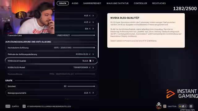 08:21:22Der Streamer optimiert die Grafikeinstellungen für bessere FPS in Arx, nachdem er von Zuschauern Tipps erhalten hat. Er deaktiviert DLSS Frame Generation und V-Sync, aktiviert Ingame Reflex und setzt Schatten, Nachbeleuchtung und globale Beleuchtung auf niedrig. Trotz einer RTX 3080 GPU berichtet er von niedrigen FPS und testet die Änderungen live. Nach einem Neustart des Spiels zeigt sich eine leichte Verbesserung, aber er bemerkt weiterhin Performance-Probleme. Der Streamer diskutiert kurz Hardware-Probleme und erhält von Zuschauern Empfehlungen für Akustikschaumstoffe zur Schalldämmung seines Zimmers, entscheidet sich aber vorerst dagegen.