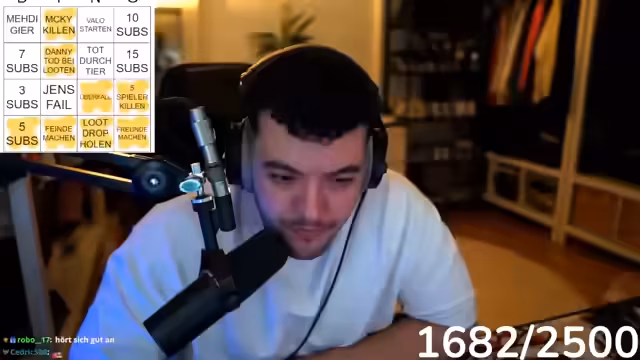 10:43:55Nach einem Kampf, in dem das Team Micky ausschaltet, beginnt die logistische Phase des Streams. Es werden Bandagen und Munition in das Lager verbracht und die Basis mit Waffen und einem Grill für die Zukunft ausgestattet. Die strategische Zusammenarbeit mit der Allianz namens Särgen wird fest etabliert, um das Ziel der Blauen Karte zu erreichen.