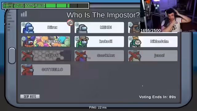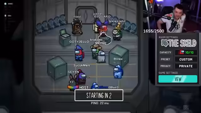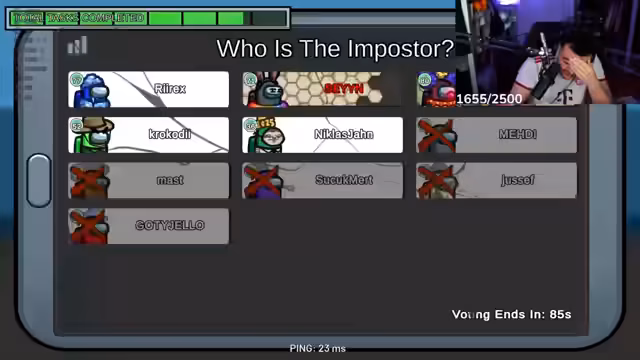 08:05:21Nachdem das Kartenpacken beendet ist, wechselt der Stream zurart zu dem Spiel 'Among Us'. Eine Gruppe von Freunden, unter ihnen Medi, Eli, Miki, Yusef und Matze, beginnt eine gemeinsame Runde. Stream und Chat tauschen sich über Spielstrategien und die typischen Verdächtigungen im Spiel aus.