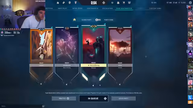01:15:14Nach einer intensiven Trainingsphase entscheidet sich der Streamer für einen Wechsel des Spielmodus. Er schlägt Team Deathmatch vor, um das Zieltraining und das Aim zu verbessern. Er äußert seine Vorlieben für bestimmte Waffen wie die Fade und Phantom und gibt Tipps für das aggressive Vorgehen in diesem Modus. Der Fokus liegt auf einer lockeren, aber dennoch konzentrierten Weiterführung der Vorbereitung.