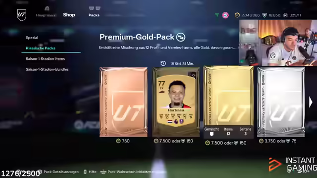 01:43:48Es werden Packs geöffnet, wobei das Ergebnis durchwachsen ist. Es werden Spieler wie Hunter und Rabiot erwähnt. Der Streamer äußert den Wunsch, endlich etwas wirklich Geiles zu ziehen, idealerweise Davis. Es wird über die Animationen im Spiel gesprochen und die Vorliebe für ältere Designs wie Sternschnuppen und Schlitze geäußert. Nach 30.000 Points hat der Streamer eine halbe Million Coins. Es wird über das Ziehen von Walkouts diskutiert, darunter Kira C. Es wird überlegt, ob man Harry Kane in Form ziehen kann. Der Streamer äußert den Wunsch nach Leminha. Es wird über Warcord-Szenen gesprochen und die Animationen der Icons diskutiert. Der Streamer zieht Kamavinga und Edermilzau. Es wird überlegt, ob man Ibra ziehen soll und ob er 5-5 oder 5-4 hat. Der Streamer bevorzugt 5 Star Skills gegenüber 5 Star Week. Es wird über Elastikos und Flickflacks gesprochen. Der Streamer legt 5 Minuten Auge auf den Chat. Es wird über Schiller gesprochen und dass er bei Testigen hinzugefügt werden soll. Der Streamer kriegt nicht mal einen Walkout. Es wird über Renat gesprochen und dass er auch schon aller 89 ist. Der Streamer will einfach inform, Akane. Es wird ein Gandalf-Package gemacht.