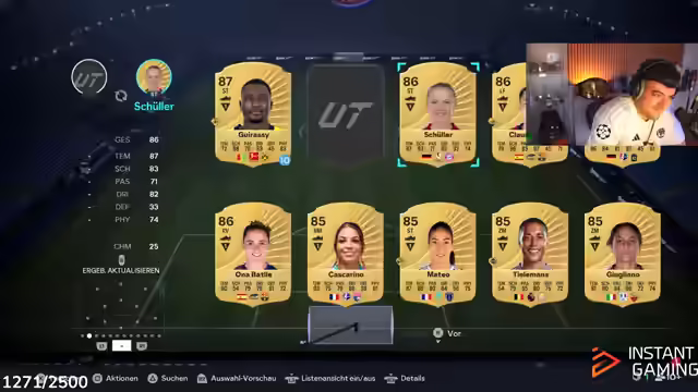 06:59:21Es wird über die Preise von Spielern wie Trossard und Doku diskutiert und die Steuern beim Verkauf von Spielern thematisiert. Es wird ein Pack-Opening veranstaltet, bei dem die Community mitfiebert. Es wird überlegt, welche Spieler ins Team geholt werden sollen, wobei Wilson als interessante Option genannt wird. Die Community wird nach ihrer Meinung zu Dribbling gefragt und es wird überlegt, ob man bis 0 Uhr warten soll, um Spieler zu kaufen. Es wird ein weiteres Pack-Opening veranstaltet, bei dem die Community mitfiebert. Es wird über die Bedeutung von schnellen Spielern im Spiel diskutiert und die Community wird aufgefordert, ihre Erfahrungen mit bestimmten Spielern zu teilen. Abschließend wird überlegt, welche Spieler ins Team geholt werden sollen, wobei die Kosten und Fähigkeiten der Spieler berücksichtigt werden.