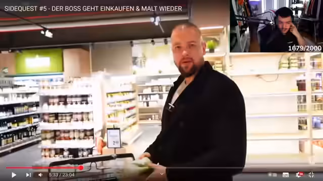 00:54:28Der Streamer filmt eine Einkaufstour in einem Supermarkt, um gesunde Lebensmittel für seine 'Boss Transformation' vorzustellen. Er empfiehlt Bio-Produkte wie Kokosnüsse, Heidelbeeren und Gurken. Gemüse wie Blumenkohl und Paprika werden je nach Zubereitungsmethode bewertet. Avocado wird nur für Guacamole als sinnvoll eingestuft, während Magerquark als smarter Eiweißlieferant mit Wasser verdünnt der teuren Marke Skyr vorgezogen wird.