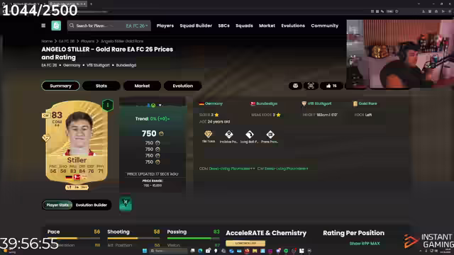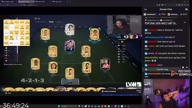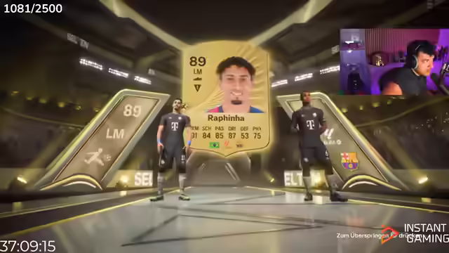 10:48:06Ein Zuschauer namens Michi FCB hat 14-1 Rewards, die nach Foki geöffnet werden sollen. Es wird über Pazzo und seine Leistung diskutiert. Ein Walkout wird erwartet, und es wird vermutet, dass es sich um ein hohes Rating handelt. Haaland wird gezogen und als wertvoll eingeschätzt (200k). Der Streamer nimmt die Belohnungen mit und freut sich über sein Investment. Michi wird in die Party eingeladen und der Streamer bereitet alles vor. Es wird nachgefragt, wie man die Rewards öffnet und ob man nur zuschauen kann. Michi gibt an, Kimmich, De Jong und Araujo im Team zu haben und Coins zu benötigen. Der Streamer verspricht, etwas Schönes zu ziehen und beginnt mit dem Öffnen der Packs. Rafinha und Saka werden gezogen, was als Erfolg gewertet wird.