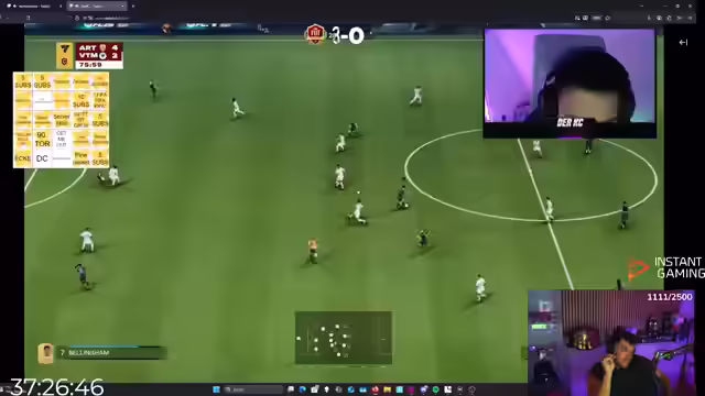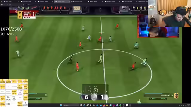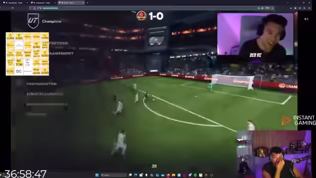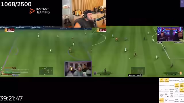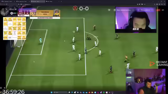 11:35:14Es wird sich über das unspielbare Gameplay beschwert und festgestellt, dass Anwählen zu Gegentoren führt. Der Streamer vermutet, dass das Spiel Pay-to-Win ist. Er fordert die Zuschauer auf, über den Submarathon zu reden. Es wird über einen LTG-Account und unrealistische Spielsituationen gelästert. Casey liegt 2-0 hinten. Der Streamer bedankt sich für Spenden und stellt fest, dass sie schon 26 Stunden gestreamt haben und noch 11 Stunden vor sich haben. Er schlägt eine Happy Hour vor, bei der 1 Sub eine Minute weniger bedeutet. Der Streamer hat Playstyle ausgestellt, aber es wird wieder angezeigt. Er versucht, positiv zu bleiben, obwohl das Gameplay nicht das schlimmste ist, das er dieses Jahr gespielt hat.