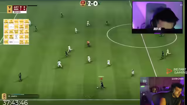 11:00:11Casey geht los und es wird über sein Verhalten und seine Spielweise diskutiert. Er redet oft Englisch und es wird angemerkt, dass er viel quasselt. Der Streamer hat die letzten Shows nicht geguckt und findet einiges cool. Es wird über die Abwehr nach einer Ecke und ein dräges Game Day gelästert. Der Streamer hat jetzt schon keinen Bock mehr zu spielen und unterdrückt einen Ausraster. Es wird sich über den Patch und das Gameplay beschwert. Der Streamer ist geflasht und überlegt, die Formation zu wechseln. Er fragt sich, ob Casey immer so viel quasselt. Es wird sich darüber aufgeregt, angewählt zu haben und direkt ein Gegentor zu kassieren. Der Streamer hat kein Bock mehr und will gar nicht mehr spielen.
