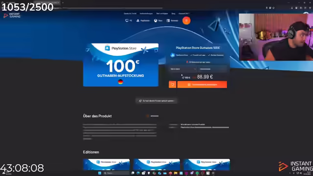 02:03:24Es wird eine Partnerschaft mit Instant Gaming erwähnt, über die vergünstigte PSN-Karten erworben werden können. Es wird auf Rabatte hingewiesen, beispielsweise eine 100er PSN-Karte für 88 Euro. Der Streamer betont, dass die Angebote zeitlich begrenzt sind und schnell ausverkauft sein könnten. Es wird erklärt, dass Instant Gaming eine legale und etablierte Plattform ist, die seit vielen Jahren existiert. Es wird darauf hingewiesen, dass über Instant Gaming auch Rabatte auf Spiele und andere Guthabenkarten erhältlich sind, beispielsweise für Valorant Points. Der Streamer erklärt, dass der Ref-Link zu Instant Gaming automatisch unterstützt, wenn darüber eingekauft wird. Es wird bestätigt, dass auch Guthaben für EA am PC über Instant Gaming erworben werden kann.
