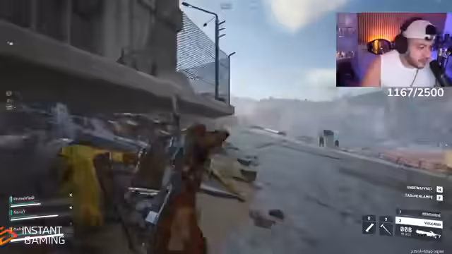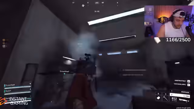 05:00:24Das Team betritt die Karte und nutzt taktische Elemente wie Zip-Lines, um sich schnell zu bewegen und überraschende Angriffe zu starten. Die Kämpfe finden hauptsächlich in Innenräumen statt, wo der Streamer mit seiner Tempest gezielt Gegner unter Druck setzt. Ein zentrales Element ist die Nutzung von Smoke-Grenaten zur Tarnung und Jolt Mines zur Blockierung von Zugängen. Das Ziel ist, Gegner in mehreren Richtungen einzukreisen und sie gleichzeitig mit Angriffen von verschiedenen Seiten zu überwältigen, um sich einen Vorteil zu verschaffen.