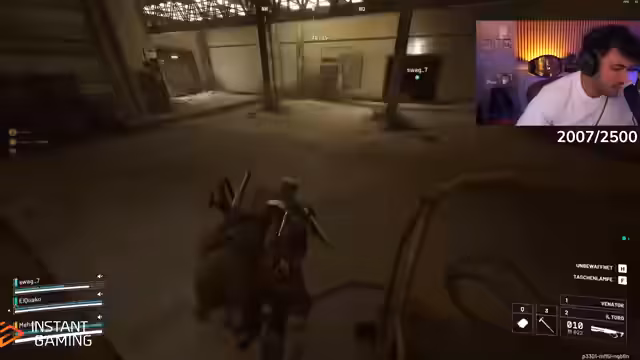 07:10:49Ein weiterer Raid endet im Frust. Das Team hat sehr gute Beute wie zwei Stitcher 4 und Venator 4 zusammengetragen, verliert alles durch eine schnelle Niederlage. Der Streamer ist sichtlich verärgert über den eigenen gierigen Umgang mit dem Loot, anstatt sicher auszusteigen. Er vergleicht sich selbst mit einem Hund, der seinen eigenen Schnabel nicht voll kriegt.