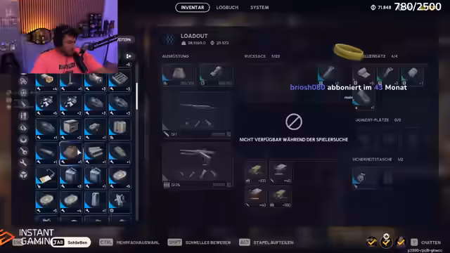 03:51:34Nach dem Rückschlag baut der Streamer ein neues, optimiertes Loadout. Er entscheidet sich, mit einem blauen Rucksack zu starten, eine dicke Anvil und Kettel mitzunehmen, und hofft auf einen direkten Kampf, wenn Gegner ihn sehen. Er beschreibt das Gefühl, nach einem vollständigen Setup eine vollere Ausrüstung nicht mehr als "Penner-Modus" zu empfinden, was den Aufwand des Builds unterstreicht.