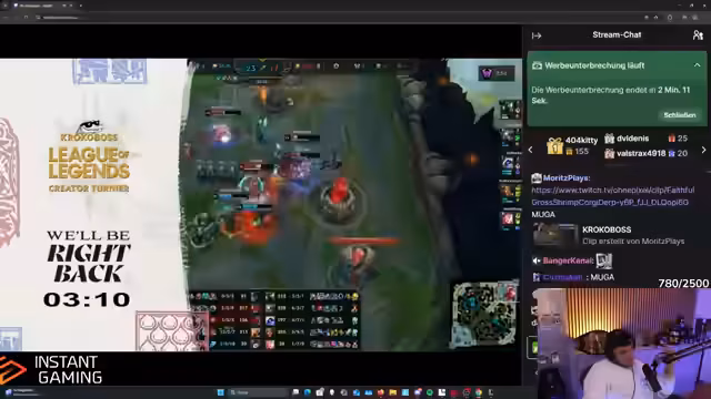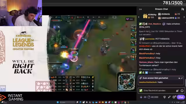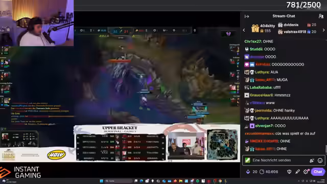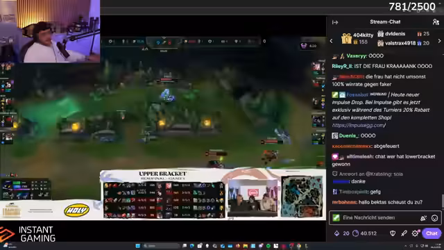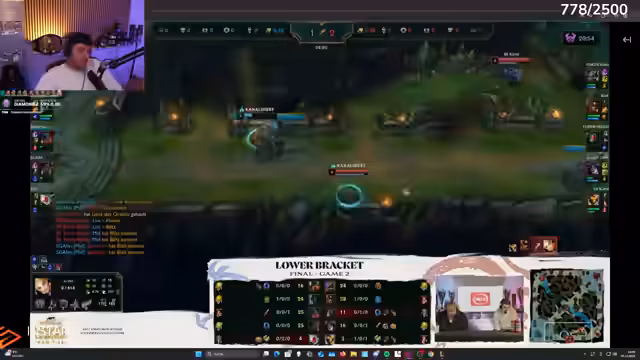 00:19:20Der Streamer informiert seine Community über den aktuellen Stand des Turniers. Er bestätigt, dass sein Team weitergekommen ist und sich nun im Lower Bracket befindet, wo um 10.000 Euro gespielt wird. Sollten sie es ins Finale schaffen, geht es um 20.000 Euro. Er erklärt, dass das aktuelle Match zwischen Zane und Willi im Loser Bracket stattfindet und einer von beiden ausscheiden wird. Die Spannung ist hoch, da die Spieler um den Verbleib im Turnier kämpfen. Es wird auch über die Strategien und Champion-Picks der Gegner spekuliert, was die taktische Tiefe des Wettbewerbs unterstreicht.